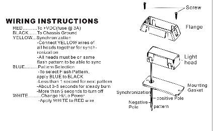 Description:This Series Grille Lights are standard in the industry. It boasts TIR4 or L LIN6 LED clusters with 23 flash patterns that can be synchronized with other B-series lights. Ideal forprofessionals, these lights are proofed for water, weather, and intense vibration.It can be mounted justabout anywhere with optional L brackets. They are built to last through even the toughest jobs.Voltage: 12V/24VDC Available Colors:Red,Blue,Amber,White,Green or Combine color.5 wires for simple set-up TIR4 LEDs (1 pos,1 Neg,1 Sync,1 Pattern,1Hi/Lo).PC housing and aluminum plate base.Dimensions: Length: 5.64" ; Width: 1.3" ; Depth: 1.1"